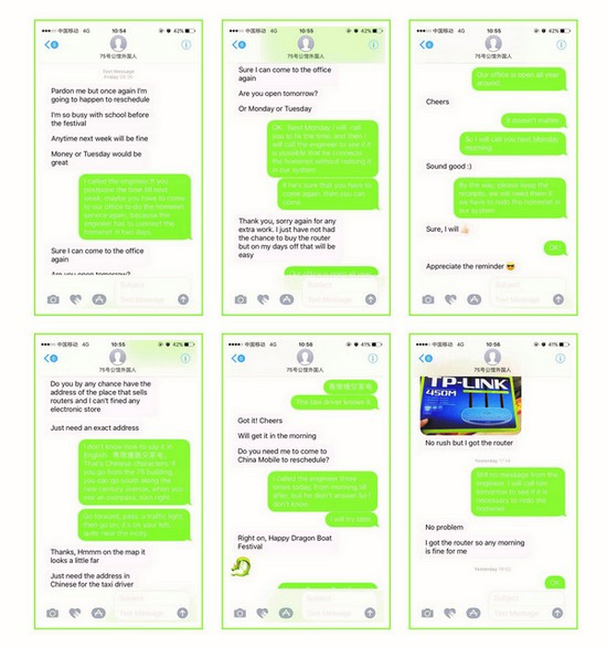 “抱歉占用你的下班时间,再次谢谢你!”暂居常熟的外籍友人向苏州移动常熟营业厅工作人员朱敏燕发来短信,感谢朱敏燕下班后的贴心服务,让他顺利用上了移动宽带。